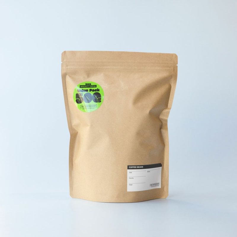 コーヒー豆500gが入った大容量のパックは、100gずつ購入するよりもお買い得。