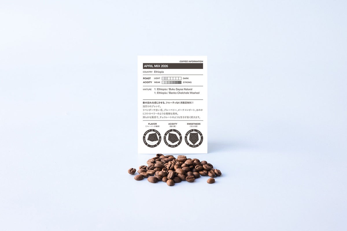 他の画像を見る 【4月限定】April Mix 2026 100g ¥ 1,500 税込 販売期間 2026/04/01 10:00 〜 2026/04/30 23:59 春の訪れを感じさせる、フルーティな4月限定MIX! 詳細を見る お気に入りに登録する