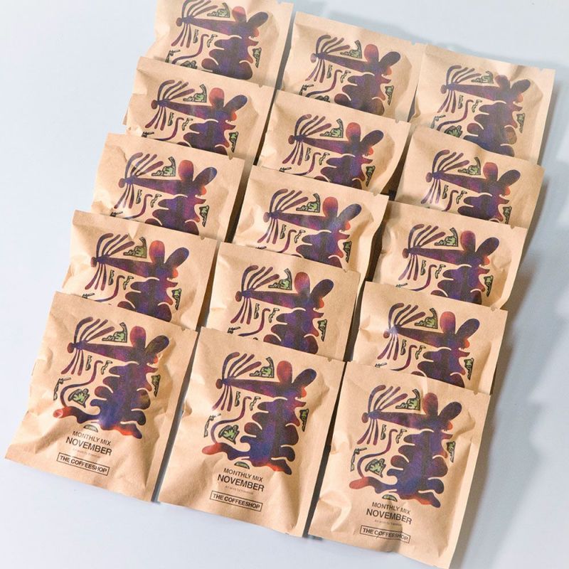マンスリーミックス限定のグラフィック入りパッケージに入った、ドリップバッグコーヒーの15個セット。